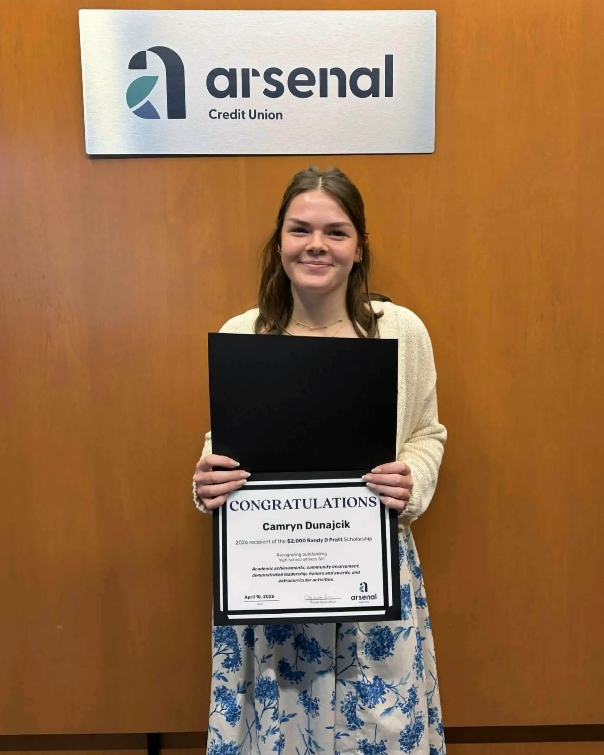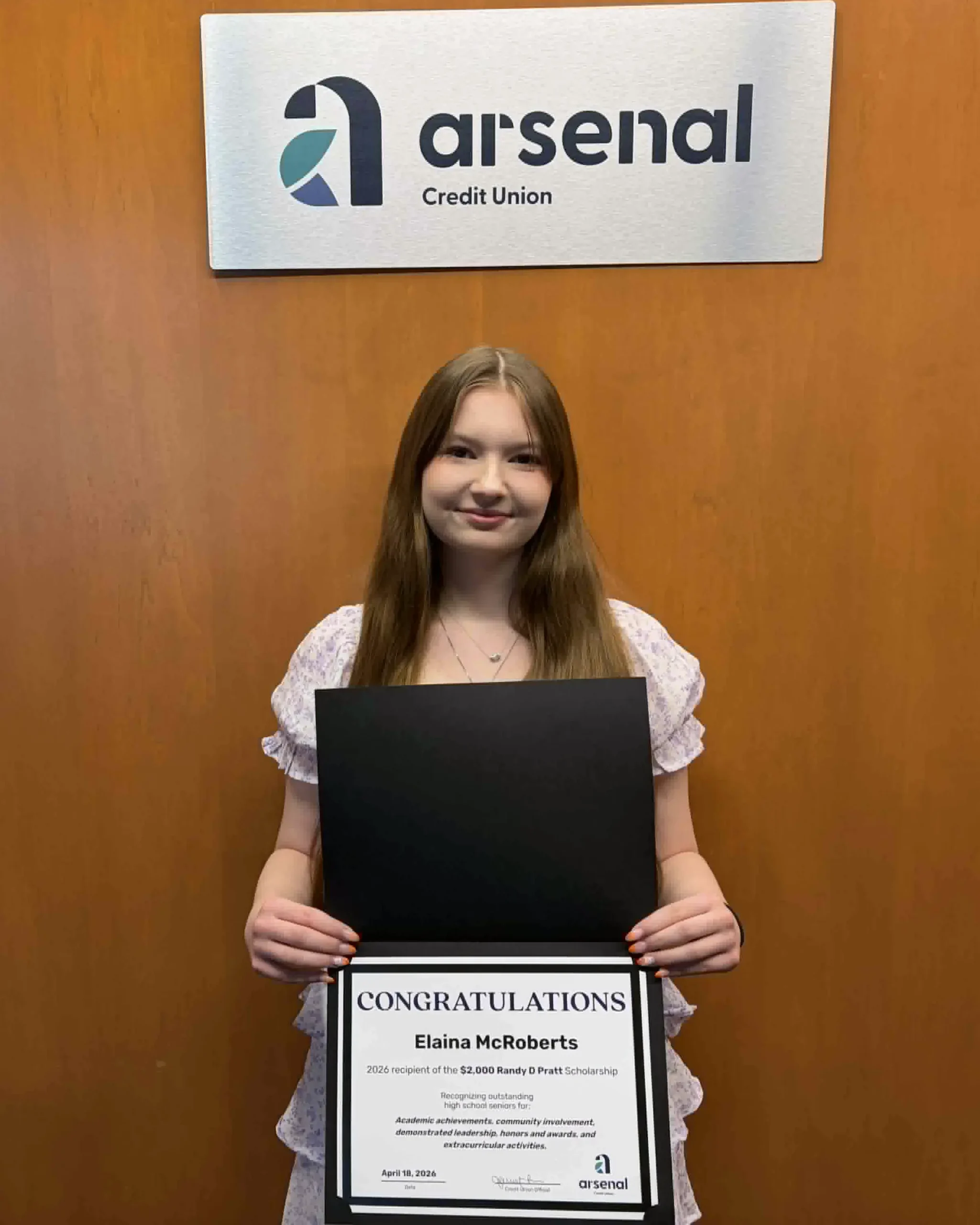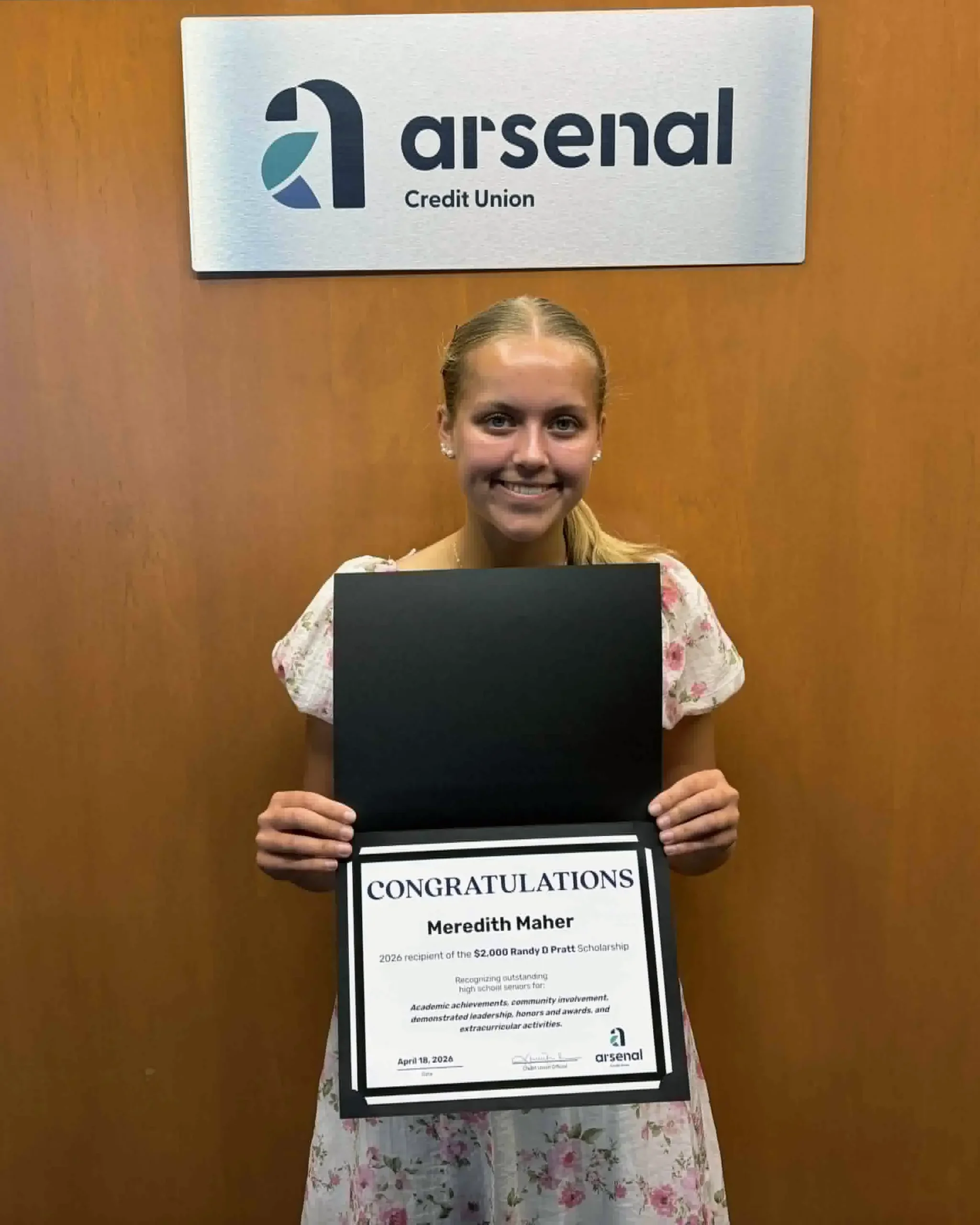 From 1997 to 2025, 118 students have been awarded a total of $128, 650 from Arsenal Credit Union through the Randy D. Pratt Scholarship Fund. This year, we awarded an additional $12,000 to six graduating high school seniors. Each scholarship winner received $2,000 to support their higher education. Awards were presented at a special breakfast ceremony on Saturday, April 18.
